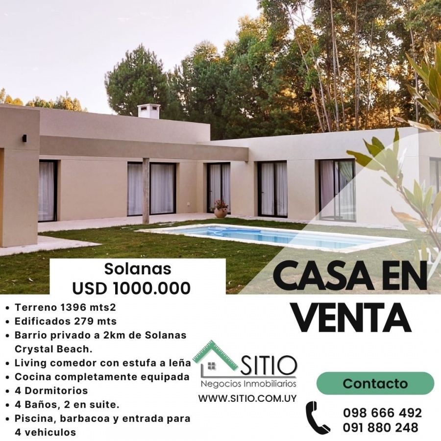 Ubicada en Barrio Privado a 2km de Solanas Crystal Beach