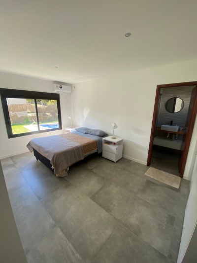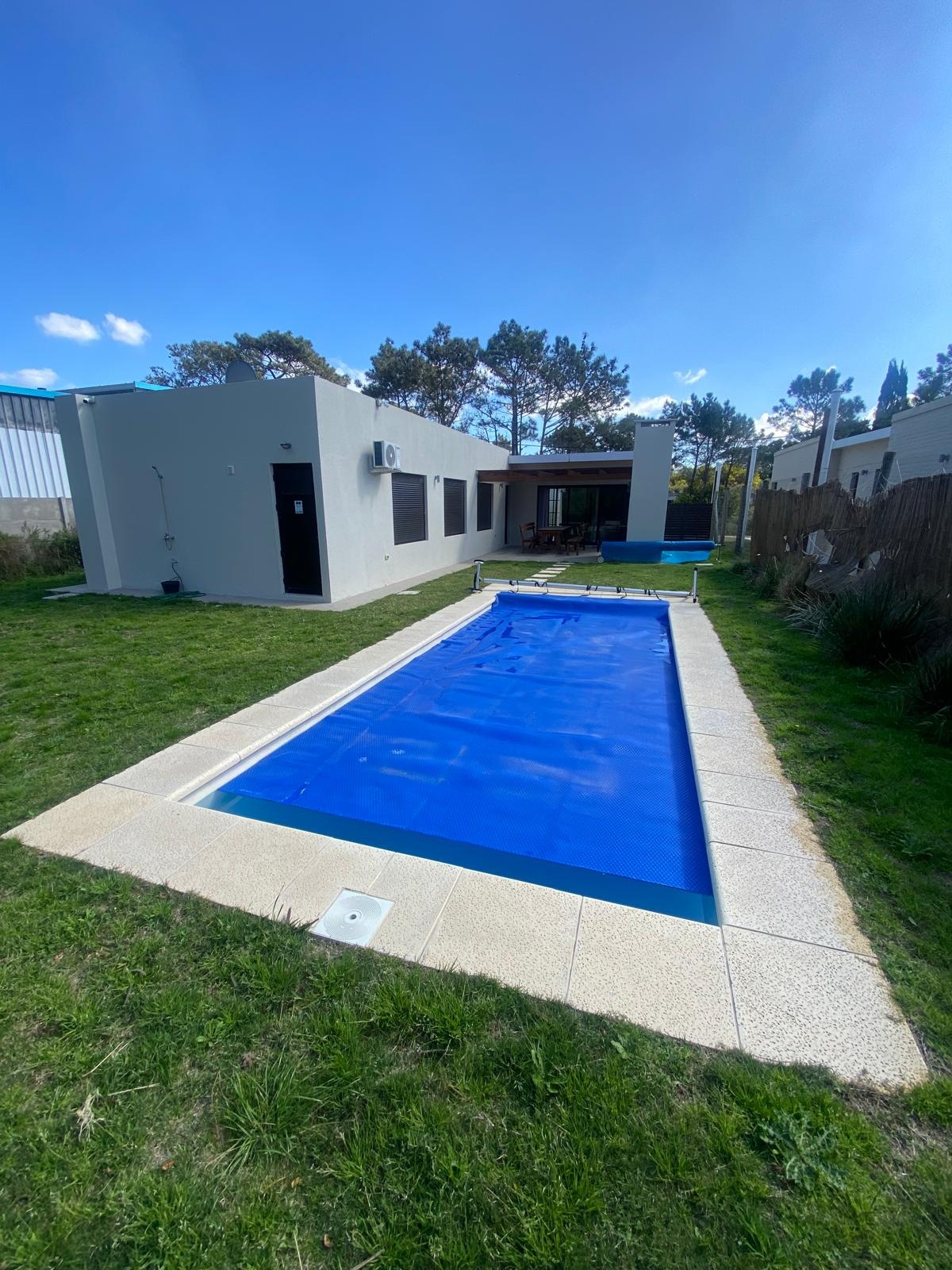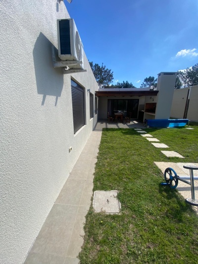 Excelente casa 105 mts2 en construcción tradicional con orientación Oeste, finalizada en el año 2022. La cual se distribuye en tres dormitorios, uno de ellos en suite, y tres baños: uno en suite, uno completo dentro de la casa y otro social exterior, en zona de piscina. La propiedad cuenta con alarma.