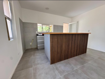Cocina de Vanguardia: Equipada con una moderna isla central que funciona como mesada y desayunador, con detalles en madera y un estilo minimalista. Perfecta para la vida social.