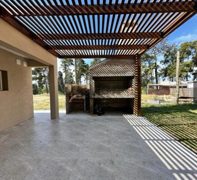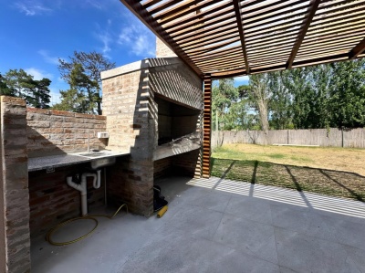 Parrillero Cubierto: Cuenta con un espacioso parrillero de ladrillo, protegido por una elegante pérgola de madera que proyecta sombras perfectas y un amplio patio. Un espacio ideal para reuniones sociales.