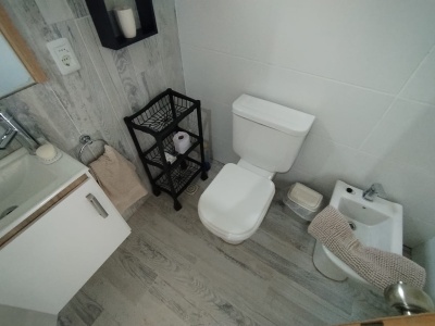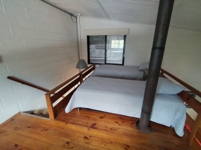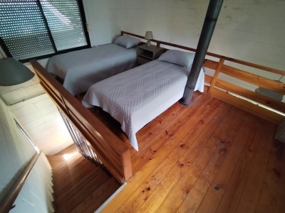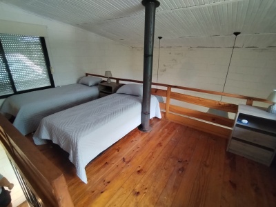Arriba: Dos somier de una plaza (2p), cama marinera (2p), cómoda y dos mesas de luz.