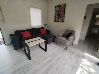 Living comedor con sillón grande y estira pierna, mesa de living ratona y sillón individual.