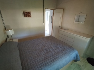 Abajo: Somier de dos plazas (2p), dos mesas de luz y cómoda.