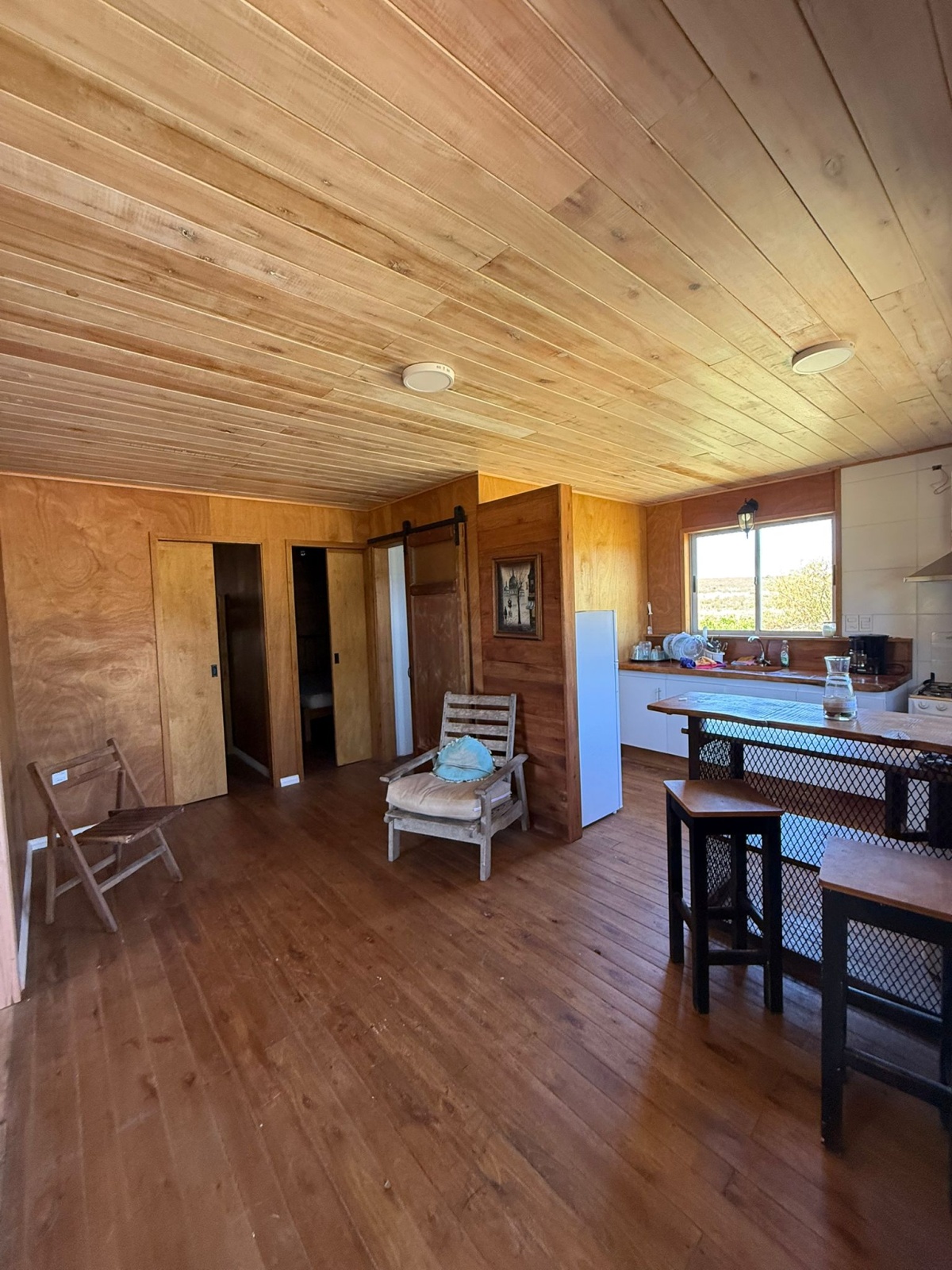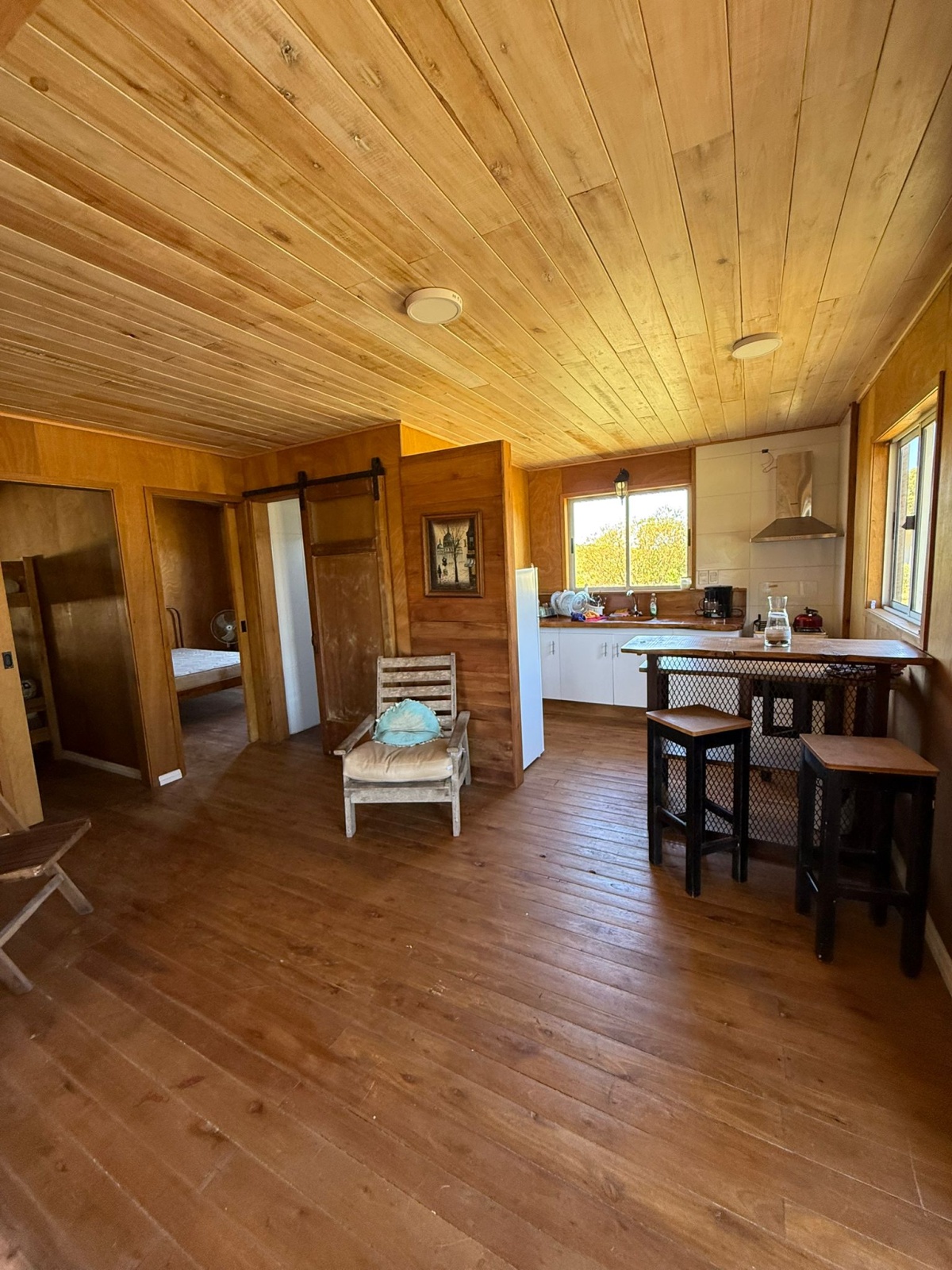 Living comedor integrado con cocina, equipado con sillón de dos plazas.