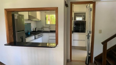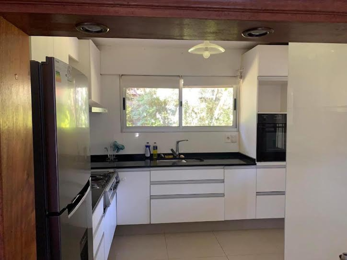 Ubicada en la tranquila y privilegiada zona de Madame Curie, Cantegril, Punta del Este, esta encantadora casa en alquiler ANUAL ofrece un estilo de vida inigualable. Con una superficie total de 210 m2, cuenta con 5 ambientes que incluyen un hermoso living-comedor con estufa a leña, amplia cocina totalmente equipada con pasa-platos hacia el comedor, 3 cómodos dormitorios y 3 baños. La propiedad, que tiene 15 años de antigüedad, se presenta en excelente estado y está diseñada para disfrutar de la calidez del sol gracias a su orientación norte.