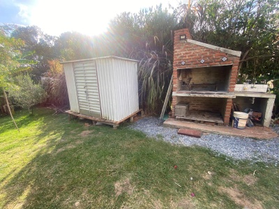 Amplio jardín con galpón de chapa para herramientas