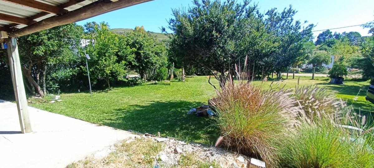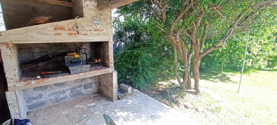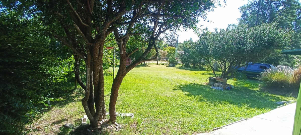 Cuenta con un amplio jardín delantero con espacio para vehículo, predio cercado y portón de acceso.