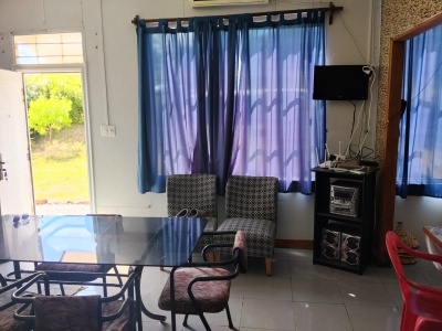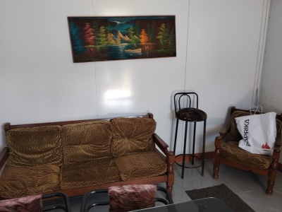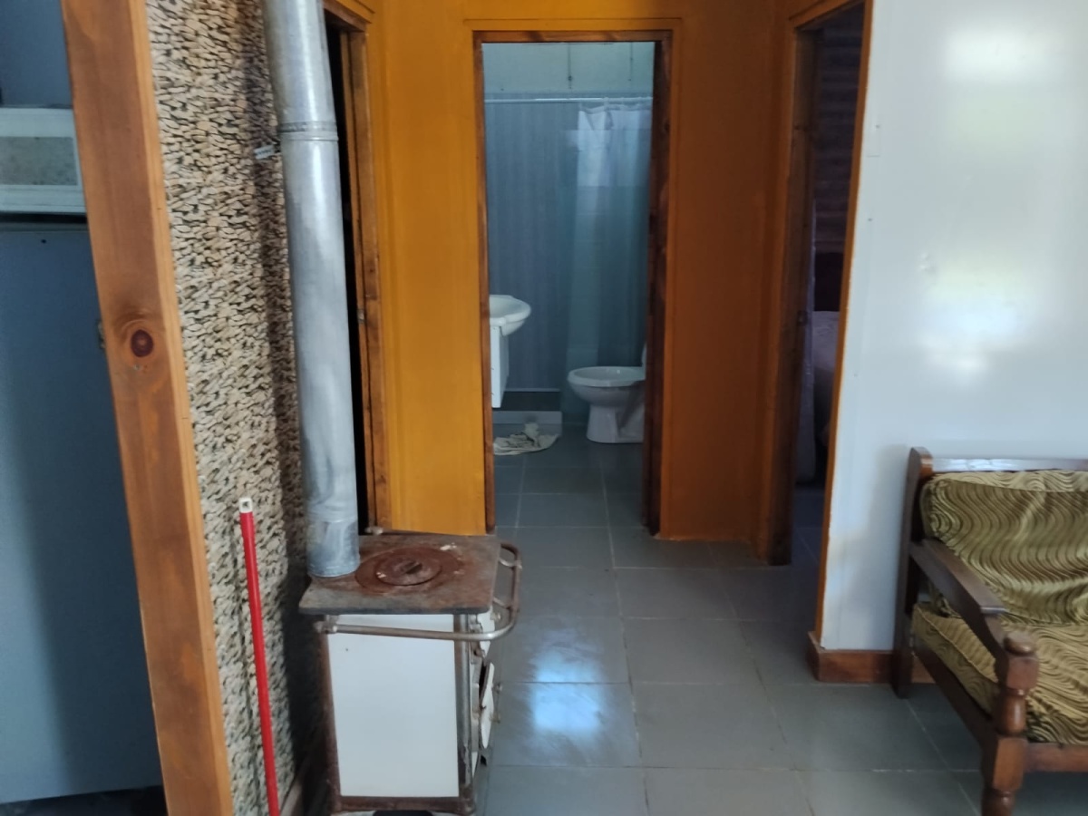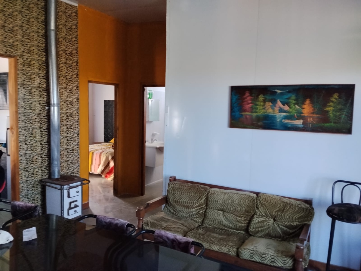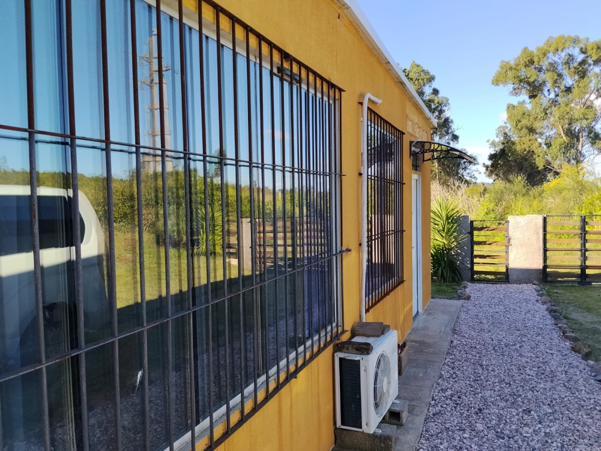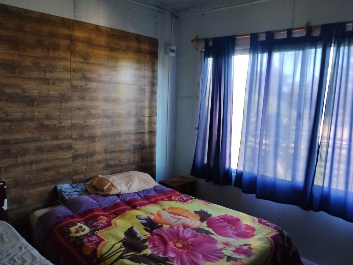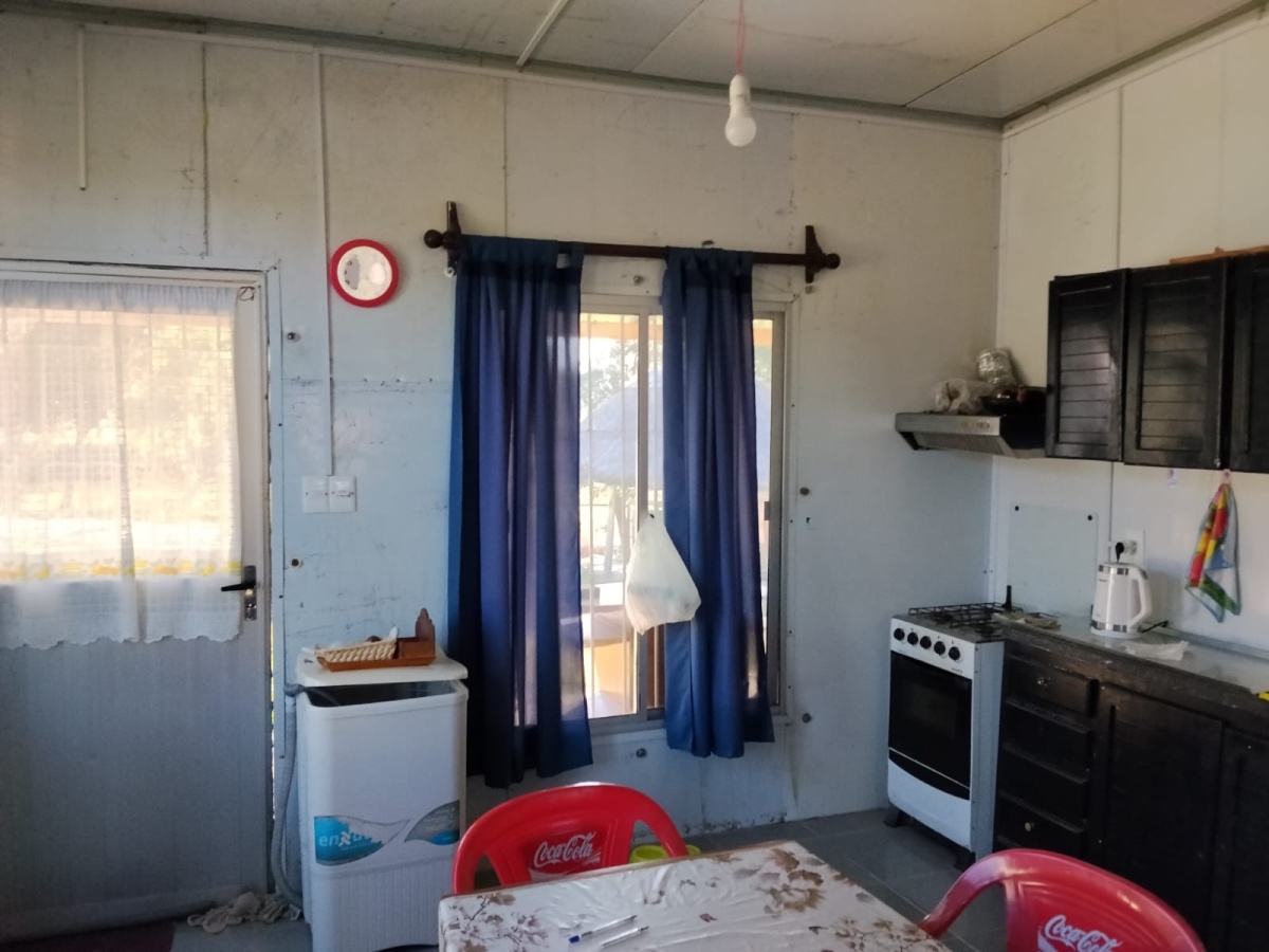 Casa en isopanel de 2 dormitorios, cocina comedor, living, baño, patio y fondo arbolado. Perímetro cercado.